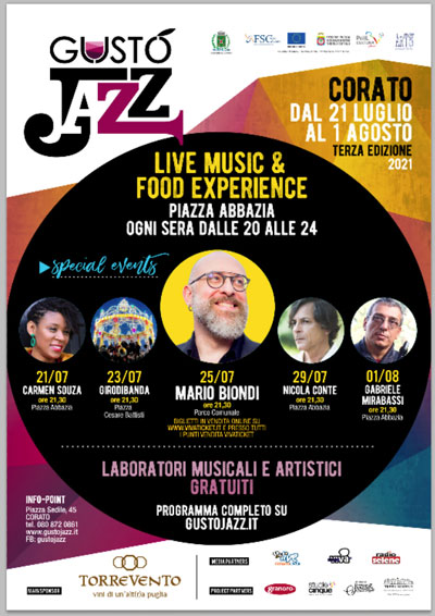 Con l’occasione alleghiamo il calendario delle attività in programma nell’ambito del Festival Gustojazz dal 21 luglio al 1 agosto.