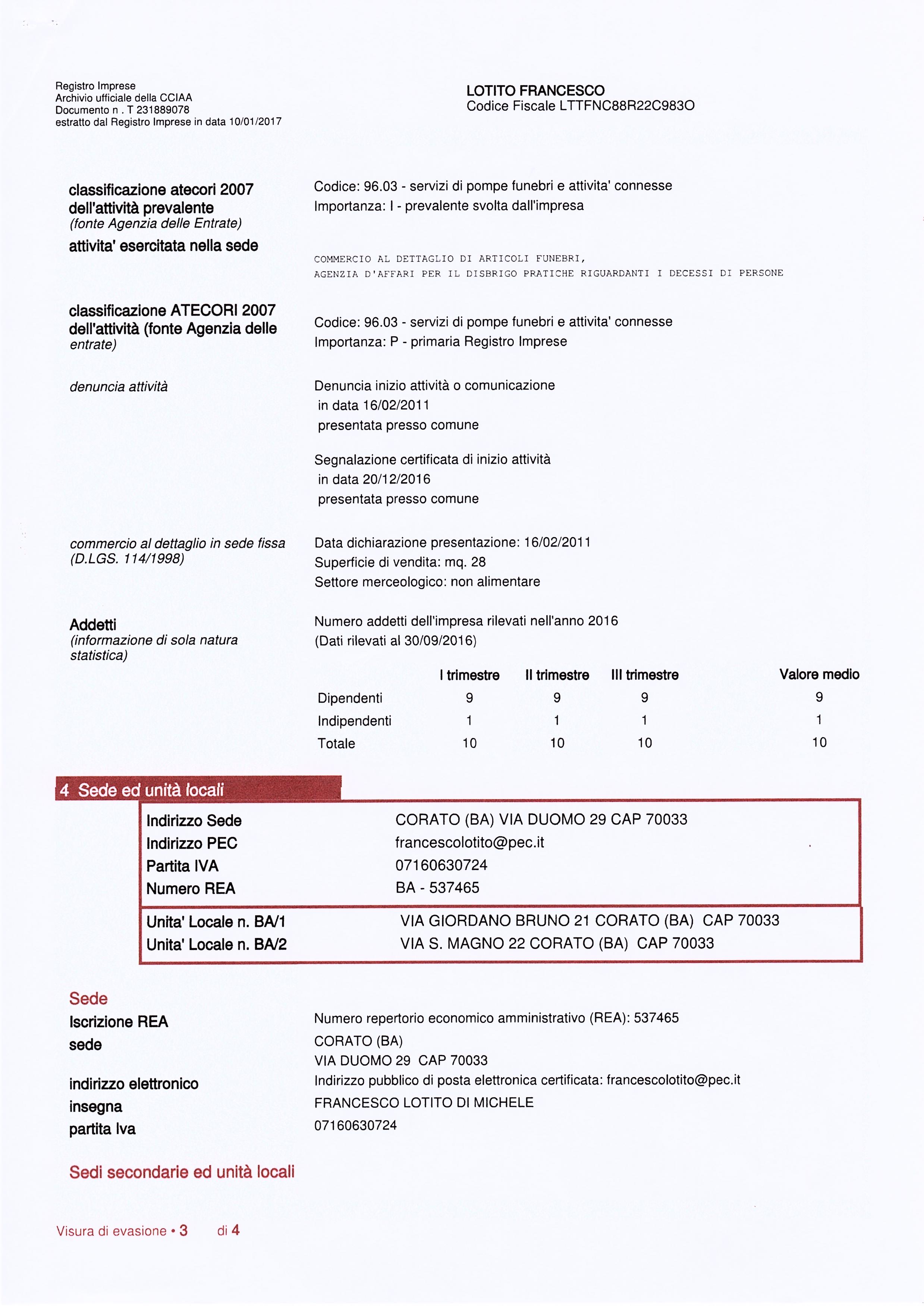 Ufficio: Settore IV - Servizi Cimiteriali Responsabile: Dott.Francesco Santarella      Beneficiario: LOTITO FRANCESCO ONORANZE FUNEBRI      Dati Fiscali:07160630724 Oggetto: RIMOZIONE SALMADALLA PUBBLICA VIA SU DISPOSIZIONE AUTORITA' GIUDIZIARIA Norma/Titolo Attribuzione: DELIBERA DI GIUNTA B.11/2017 Modalità Individuazione: AFFIDAMENTO DIRETTO SERVIZIO IN CONVENZIONE Importo: 213,81 € Data Inserimento: 28-06-2017